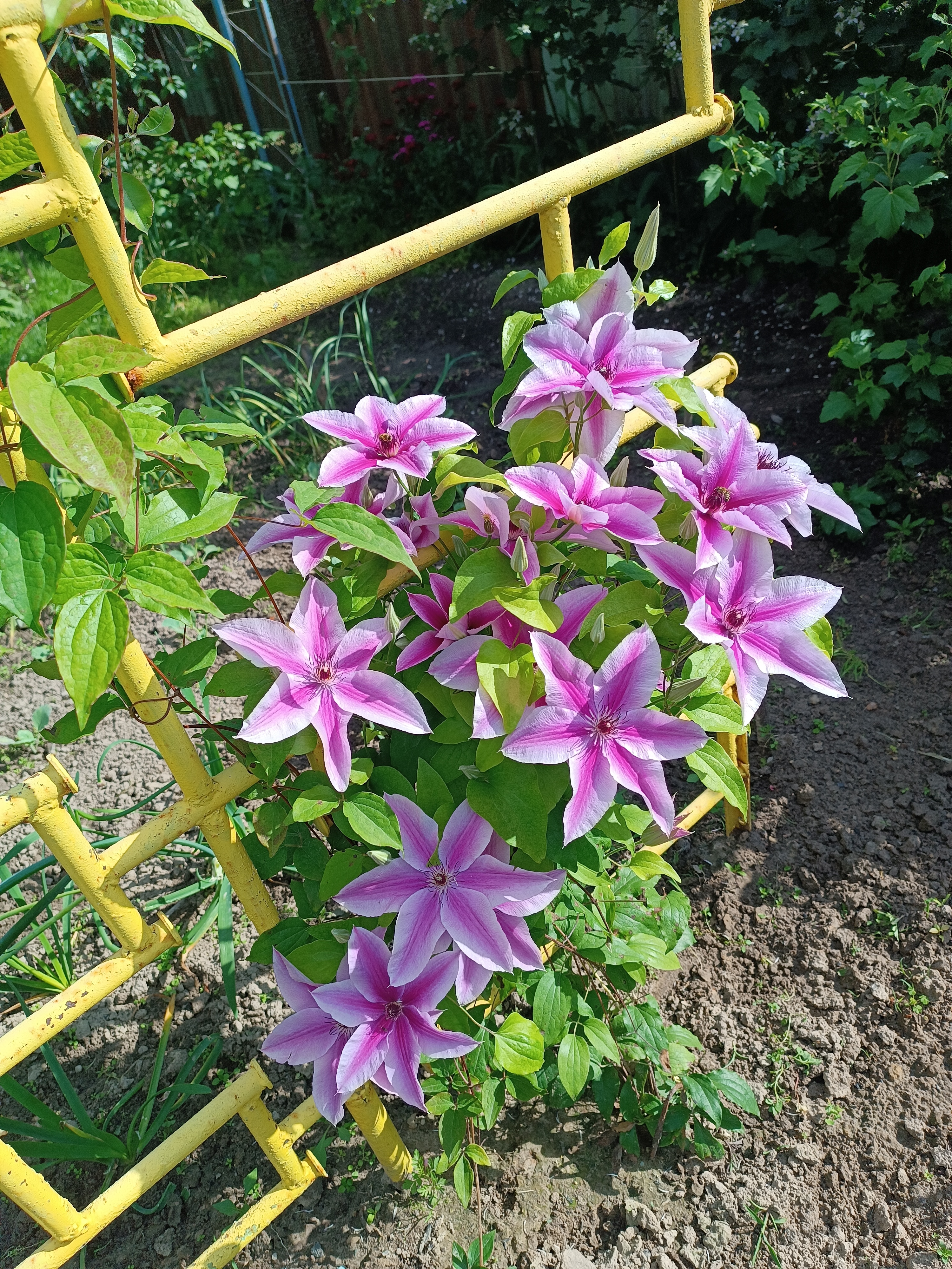 Саженцы начинают дразнить обилием цветения с весны второго года. В этот период рекомендуется вносить азотные удобрения, а на этапе бутонизации комплексные минеральные составы, отдавая предпочтение калию и фосфору осенью. Клематису Нелли Мозер необходима опора, на которую они смогут виться и расти.