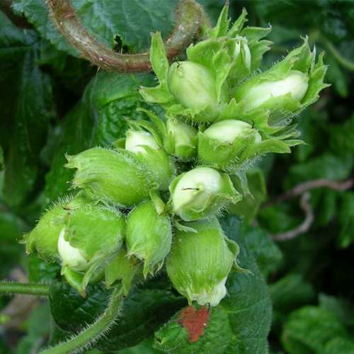 Саженцы фундука Вебба Ценный отличаются средней силой роста и компактной пирамидальной формой. В естественных климатических условиях данное растение может вырасти до 5 метров в высоту, что делает его подходящим для любого сада. Листья данного сорта довольно крупные – их длина может достигать 12 см, а ширина – 10 см. Они имеют эллиптическую или круглую форму, с тёмной верхней стороной и более светлой нижней. На нижней части листа изредка встречаются волоски, а края листовых пластин имеют мелкие зубцы.