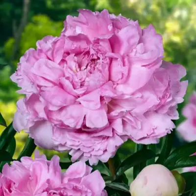 Пион Мэри Бранд превосходит многие другие сорта благодаря своим прочным стеблям, которые гордо несут роскошные розовидные цветки. Цветы обладают глянцевыми разрезными лепестками с бриллиантовым блеском, что придает им особую утонченность. Розоватый оттенок цветов создает иллюзию нежности, но при этом растение демонстрирует удивительную устойчивость – его стебли не гнутся и не поникают под весом цветов или от воздействия ветра.