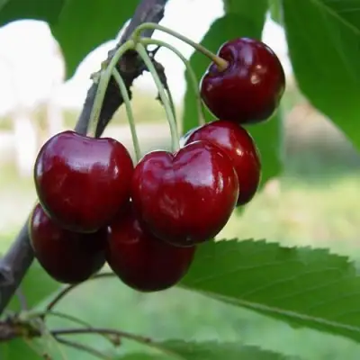 Плоды черешни этого сорта весят 7-9 граммов и обладают сердцевидной или округлой формой. Характерный темно-красный цвет кожуры визуально привлекает и намекает на сладость внутри.