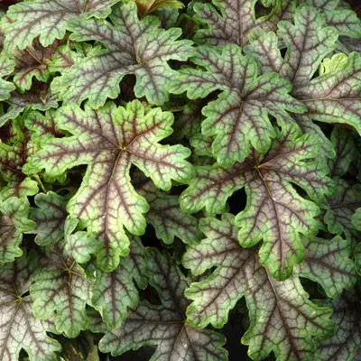 Листья гейхеры имеют дважды-лопастную форму и достигают крупного размера, утопая в блестящей поверхности, что создает эффект роскоши. Длинные черешки, покрытые густым опушением, делают это растение еще более привлекательным.