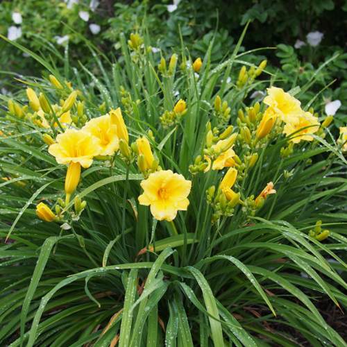 Цветение лилейника происходит в июле и августе, и этот процесс может радовать глаз в течение длительного времени. Цветы имеют простую форму и небольшие размеры, диаметром 5-8 см. Однако каждый цветок удивляет своей яркой желтой окраской, которая придает садам неповторимый шарм и солнечное настроение. Зеленое горло и приятный сильный аромат делают каждый цветок особенным.