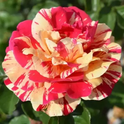 Ванилла Фрайз зацветает в конце мая и продолжает радовать глаз до октября. Цветки крупные — до 10 см в диаметре, густомахровые, с выразительными лепестками, сложенными в аккуратную чашу. Окрас — красно-малиновый со светло-желтыми полосами, но в прохладную погоду края лепестков могут приобрести нежный розовый отлив. Аромат тонкий, ненавязчивый, с лёгкой сливочной нотой. Соцветия кистевидные, по 3–5 цветка на побеге. Повторное цветение устойчивое и равномерное.