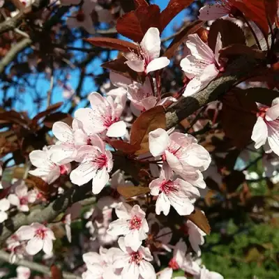Листья этого удивительного дерева имеют округло-яйцевидную форму с блеском, а их насыщенный темно-багряный цвет остаётся неизменным на протяжении всего сезона. Такой постоянный окрас добавляет эстетической ценности и яркости. Цветки сливы Вуди, нежного розового оттенка, достигают диаметра до 2,5 см и распускаются на тонких светло-розовых цветоножках. Период цветения — это настоящий праздник для глаз, когда ваш сад наполняется тонким ароматом и мягкими оттенками.