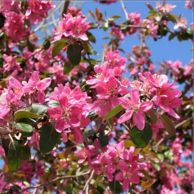 Декоративная яблоня Хелена - это растение, которое будет радовать вас своим внешним видом и привлекательностью. Она может вырастать до 3-4 метров в высоту, образуя густую, округлую и раскидистую крону. Листья этой яблони глянцевые, овальные и глубоко лопастные. При распускании они имеют темно-красную окраску, которая затем превращается в темно-зеленую. Размер листьев достигает до 7 сантиметров. Побеги яблони Хелена имеют пурпурную окраску, которая позже становится бурой.
